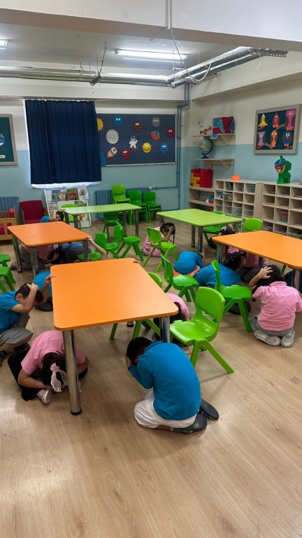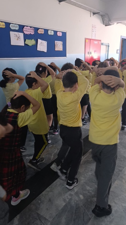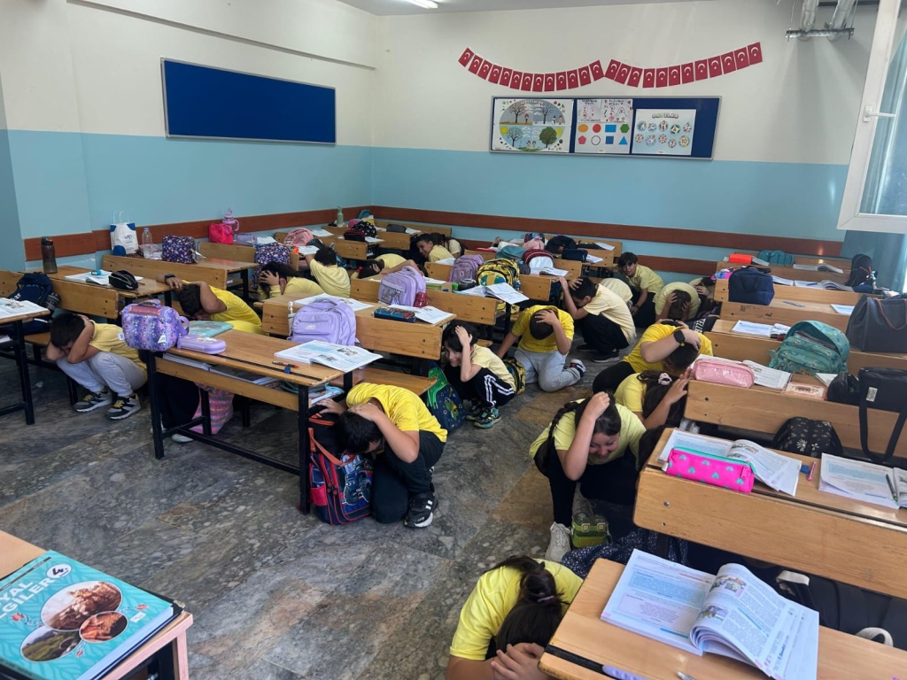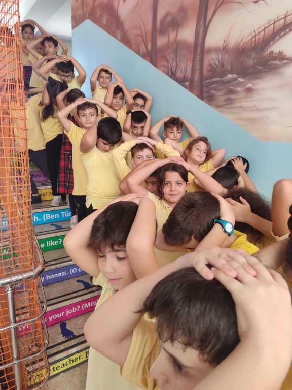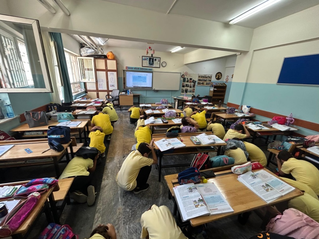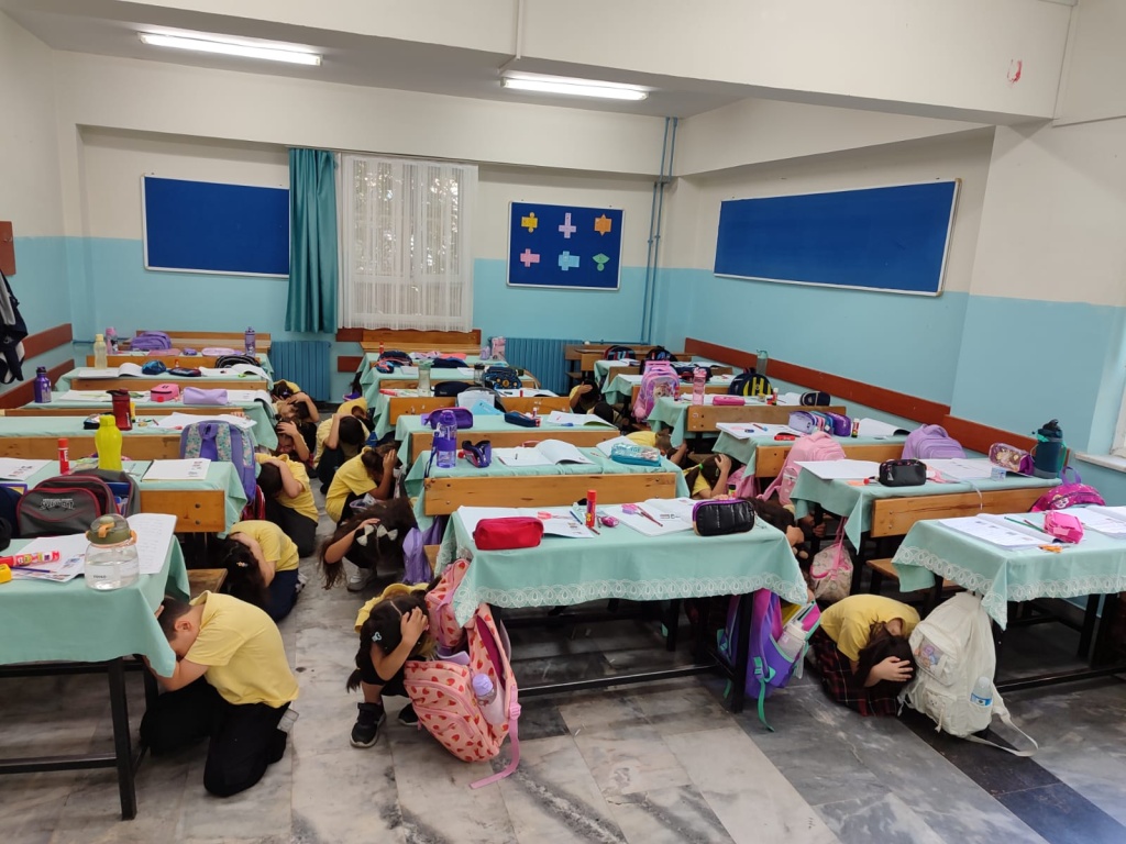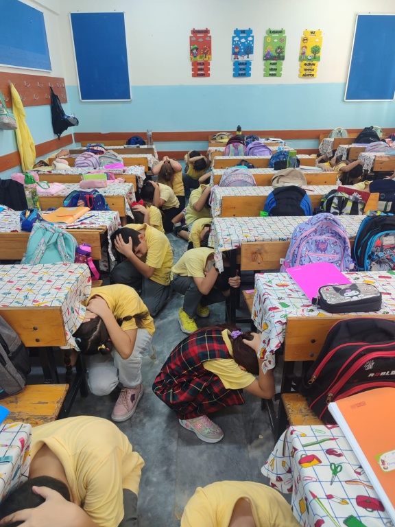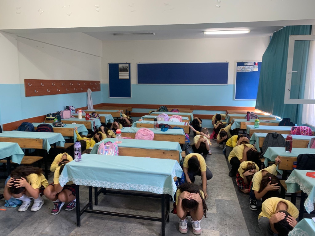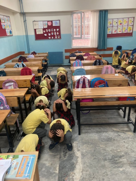 Okulumuz öğrenci ve personeli, Çök-Kapan-Tutun-Tahliye aşamalarını güvenli bir şekilde uygulayarak, deprem tatbikatını tamamlamıştır.
